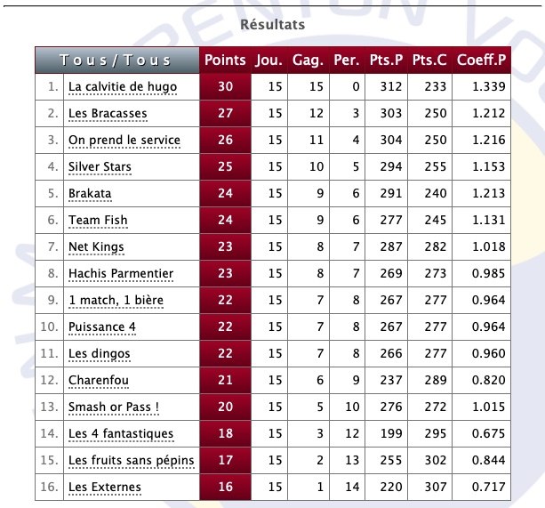 | 18 | Volley ou rien | Jonathan L., Mélanie N., Isaac N., Phi Khang B. | |